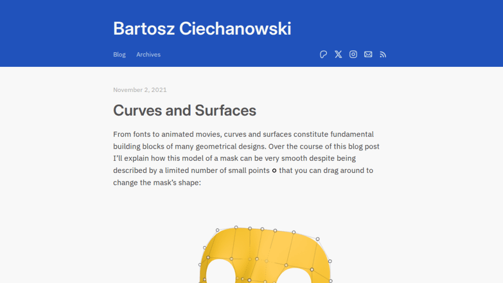 This is the first featured deep dive, which explores the matter of curves, surfaces and the math behind it.